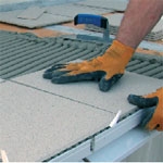 Izolant EPS 150 S (alt. EPS 200 S) sa nareže na objednávku podľa kladačského plánu a v požadovanom spáde 1,5–2,5 %. Minimálna hrúbka izolantu musí byť aspoň 40 mm. Dosky treba ukladať na väzbu tak, ako pri zatepľovacích systémoch. Izolant EPS 150 S (alt. EPS 200 S) sa lepí pomocou lepiacej hmoty PCI Multicret® Super